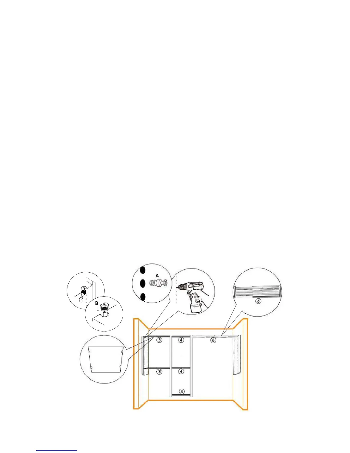 - Mount the Adjustable Shelf (6) between right Tower Panel (2) and right Wall