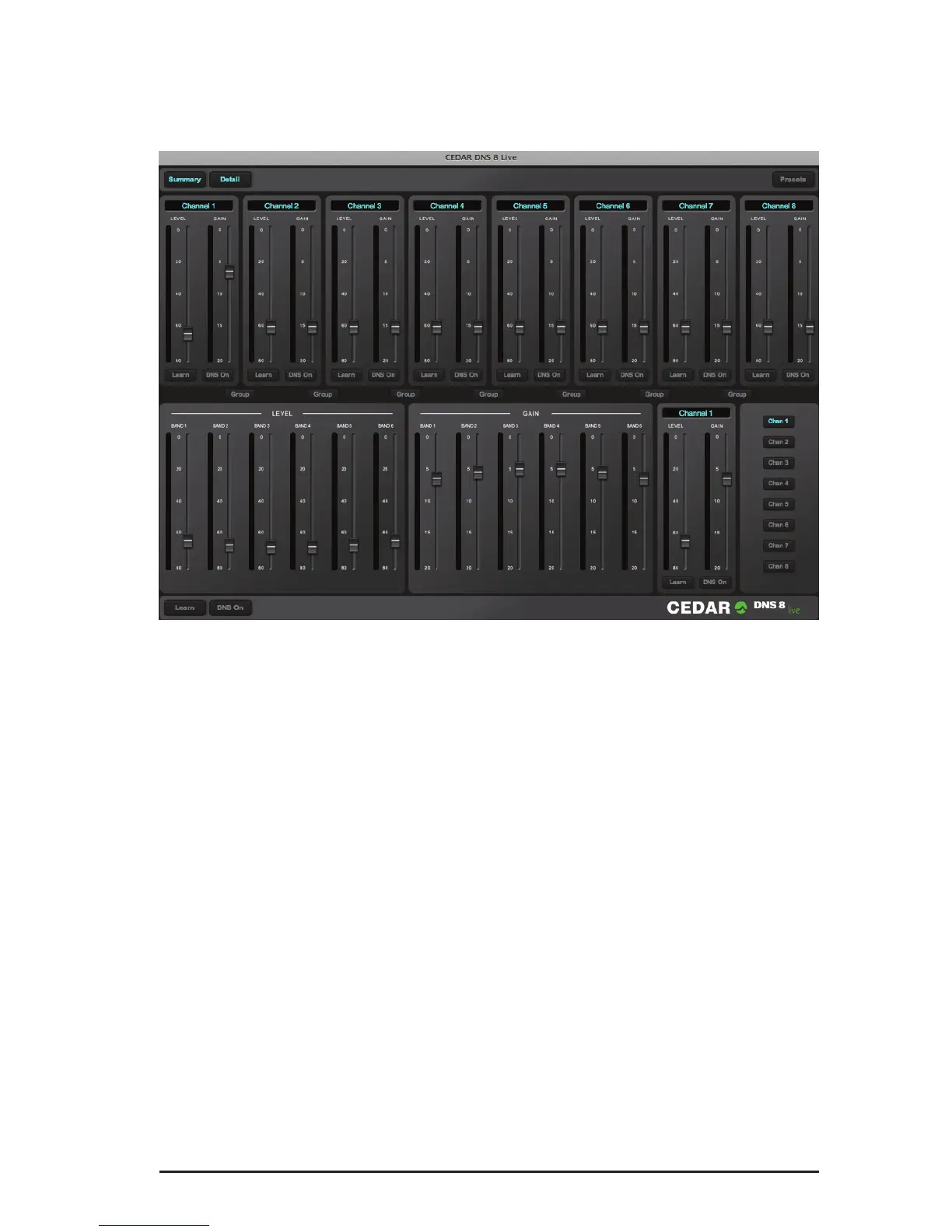 The Presets button (top right) provides access to the presets, and the Summary