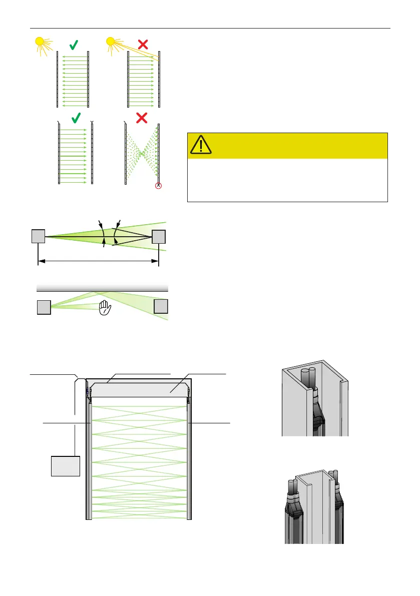 The optical axis of the emitter (Tx) and the receiver edge (Rx) need to