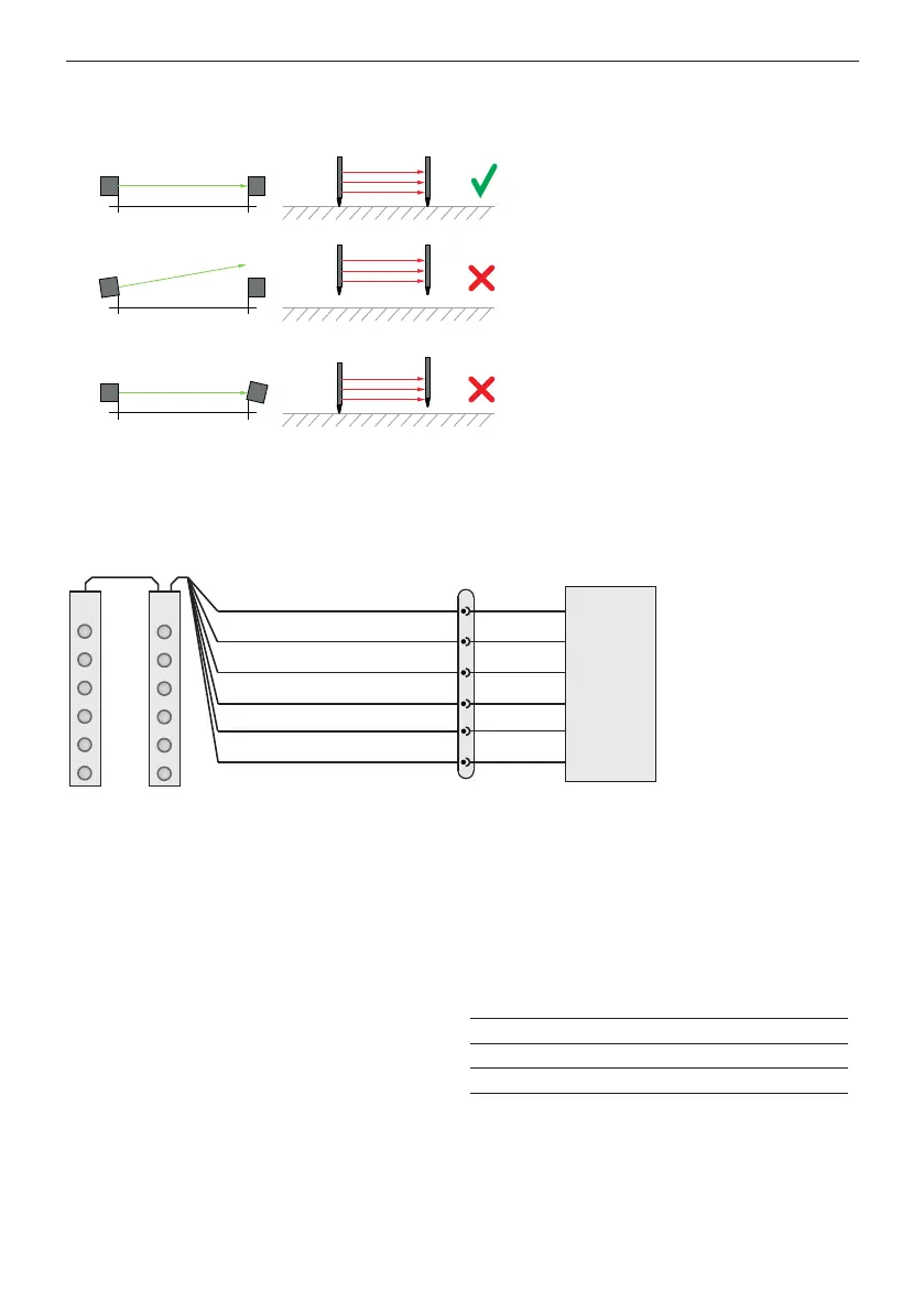 3. 投光器の筐体を受光器の反対側に取り付けます。 受光器がガイドレールに取り付けられている場合は、投光器