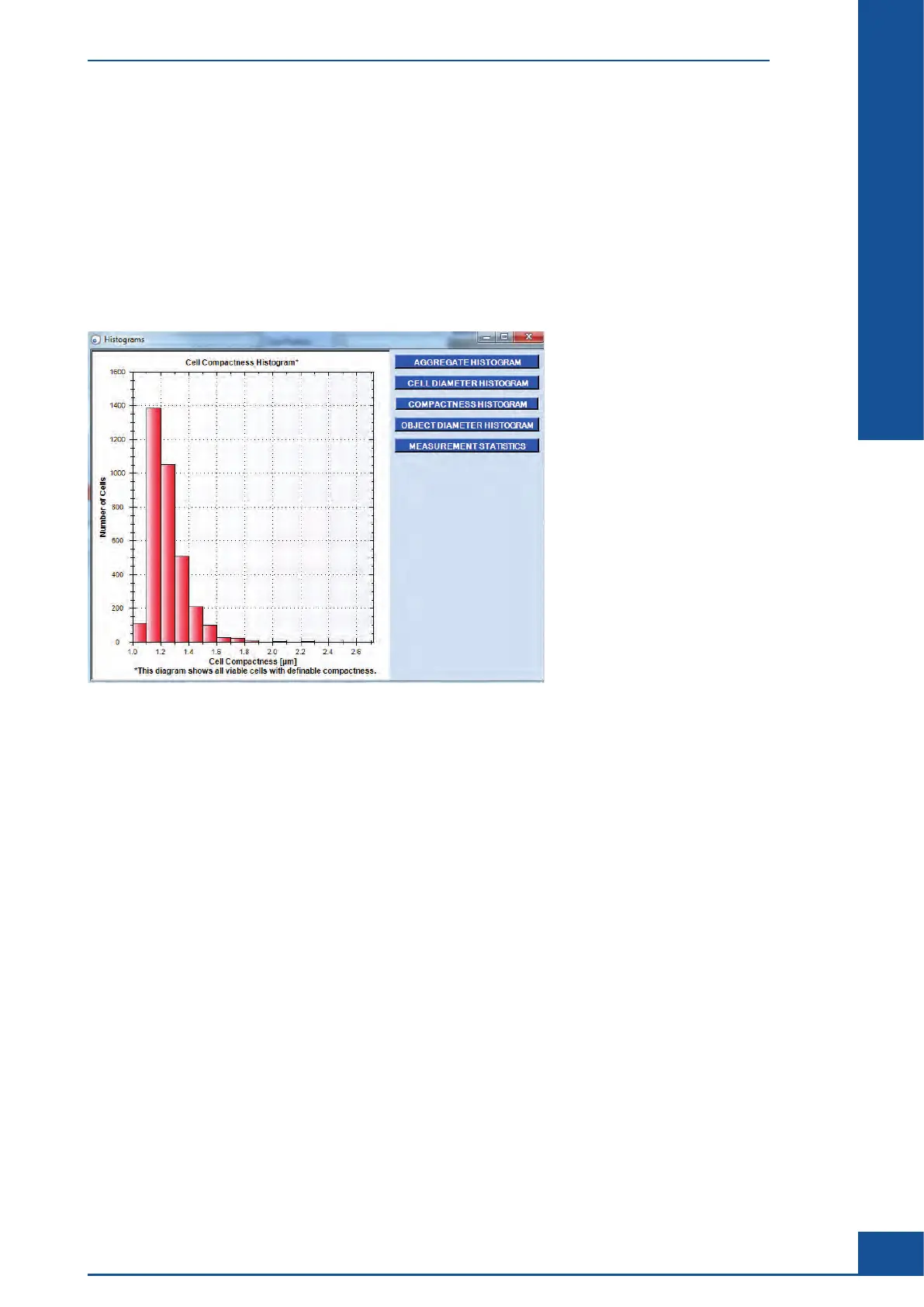 Click on the COMPACTNESS HISTOGRAM button to display a diagram that compares viable cell shapes to