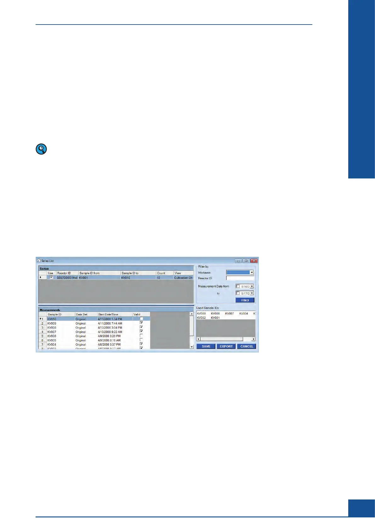 corner of the Series List dialog box. Searches can be made by Workarea, Reactor ID, or date of measurement.