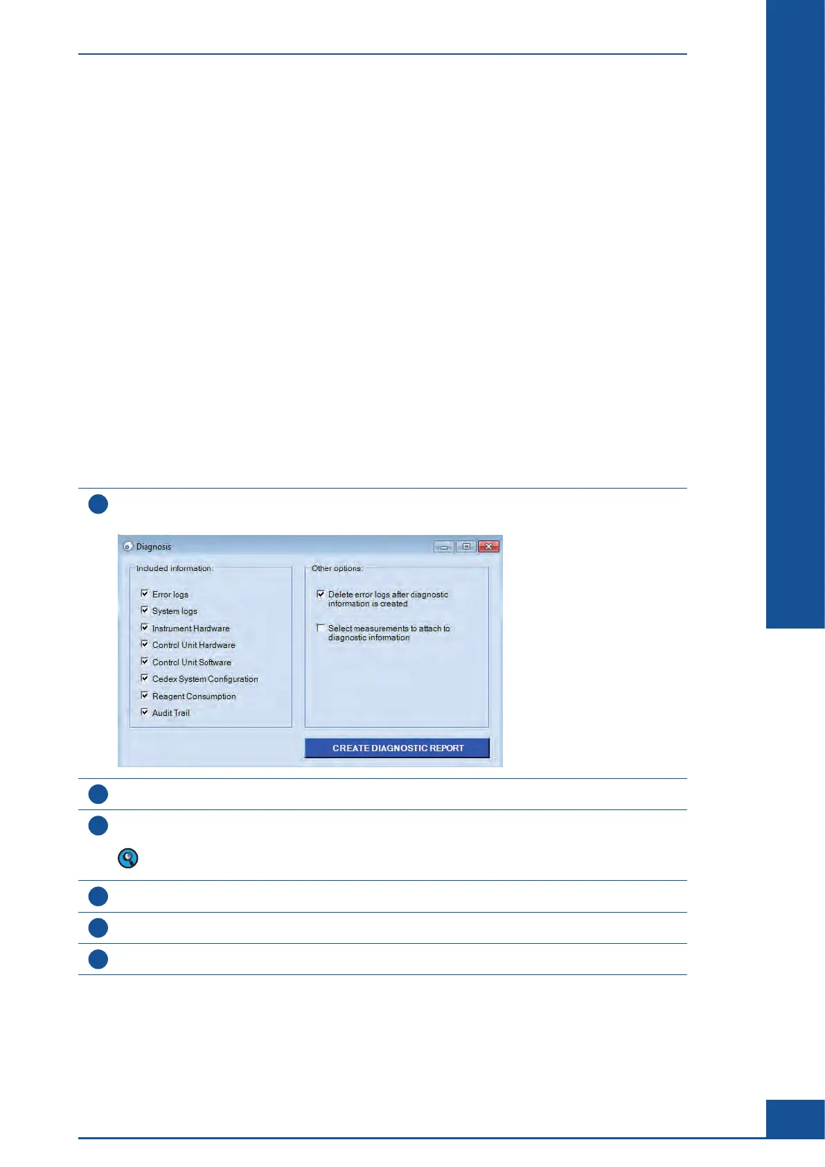 For technical support purposes, the user is able to run a diagnosis of the Cedex HiRes Analyzer at the request of