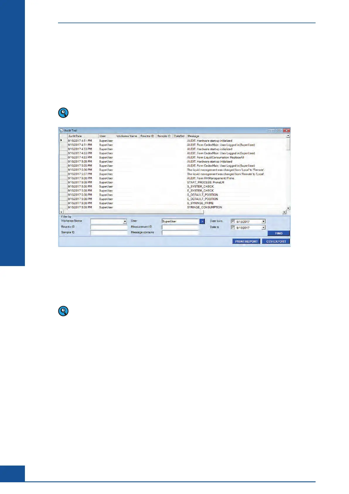 All user-initiated activities, as well as important actions performed by the Cedex HiRes Software, are recorded in