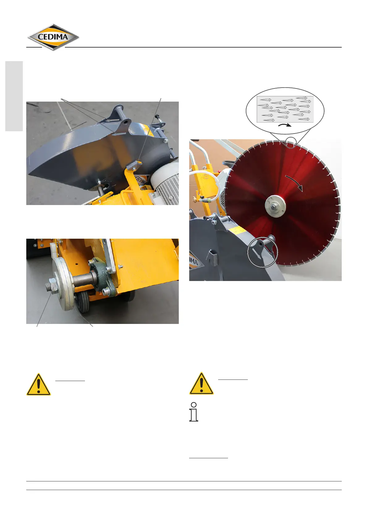 Diamond saw blade mounted in the correct direction of rotation Fig. 4.7