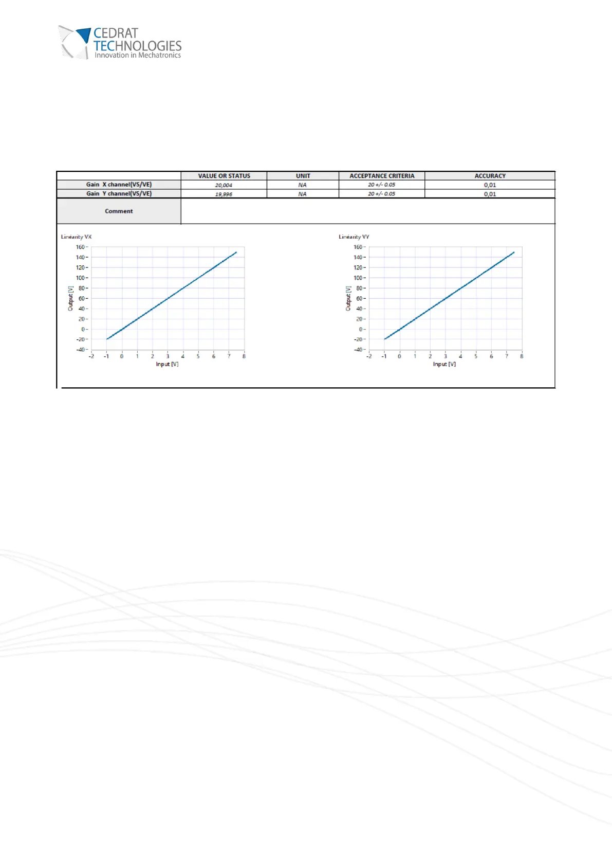 The second test (Linearity) compares in open loop the output voltage vs the input order. The amplifier gains are
