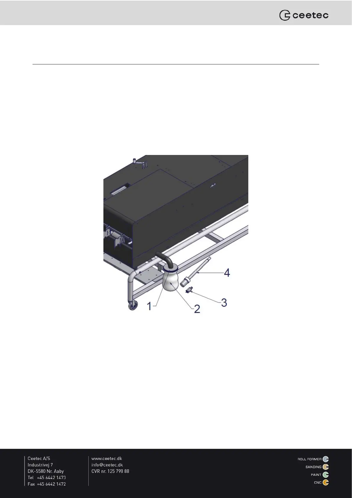 container with wood protection is placed under the filter bag, and the suction (3) and overpressure
