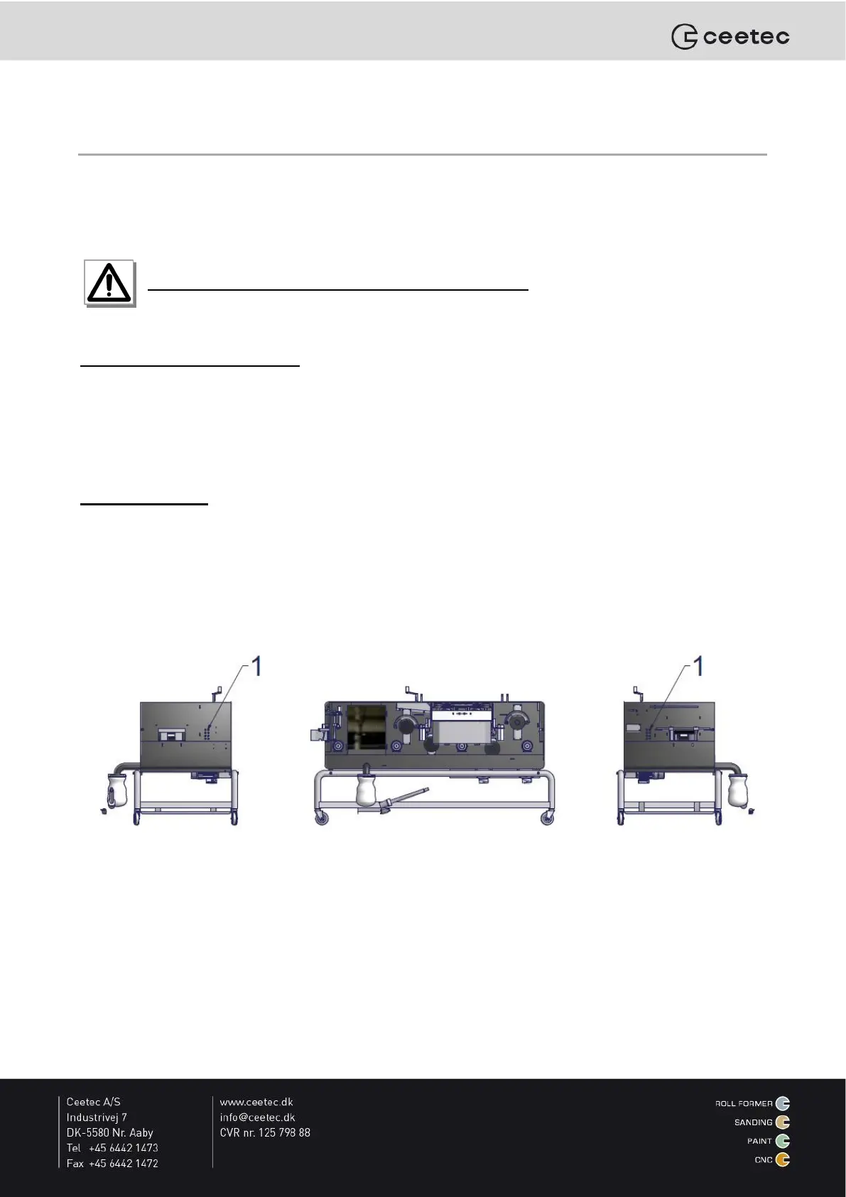Lubricating nipples (1) on the ends of the machine are greased. Pump 5 times on each lubricating nipple.