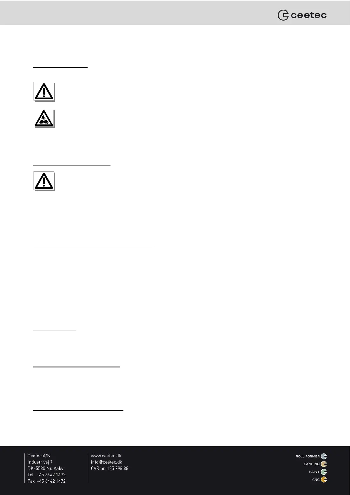 The machine can be moved on the mounted wheels. Alternatively with a forklift truck in the frame. See