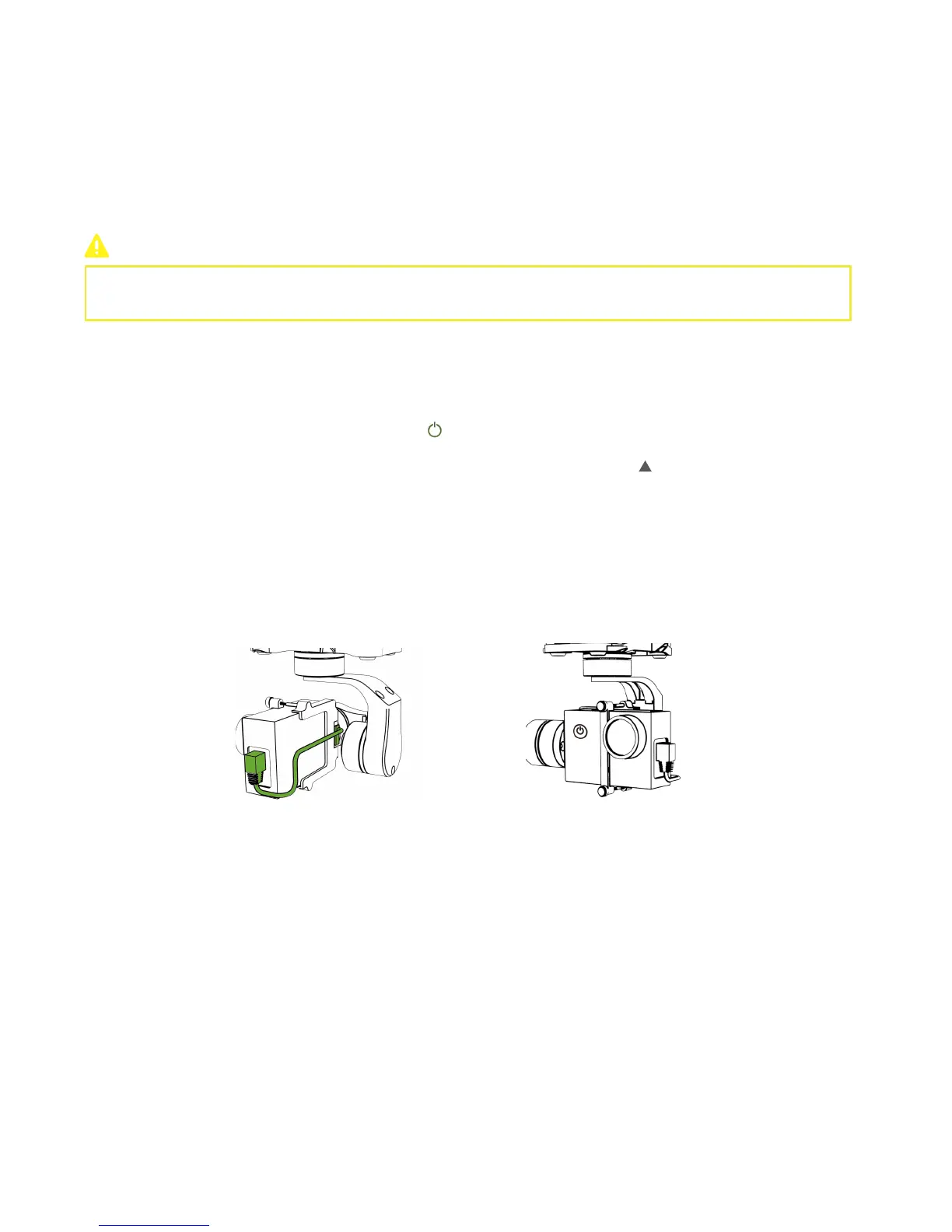 Detach the camera from the gimbal. Press Power Button ( ) over 5s. When GREEN LED is blinking, the camera has been turned on.