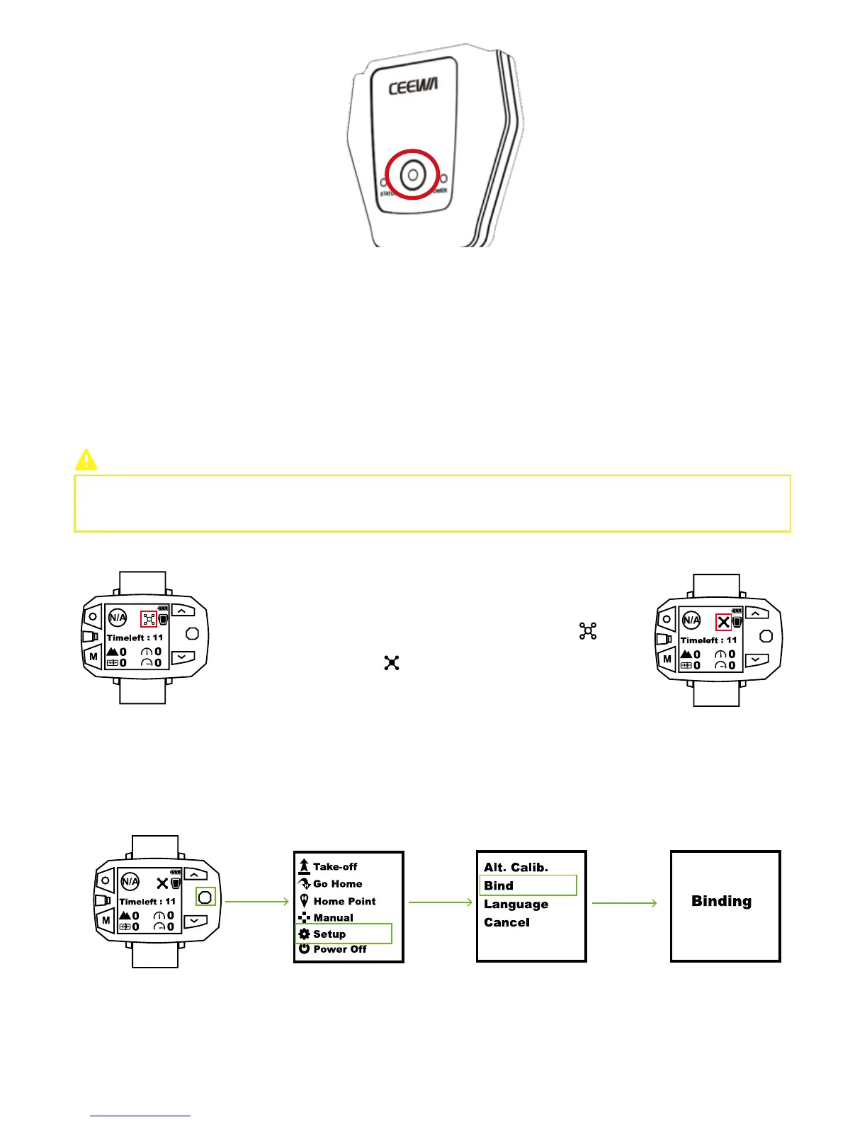 During binding, please DO NOT power on any other related devices. For instance, when binding Drone &