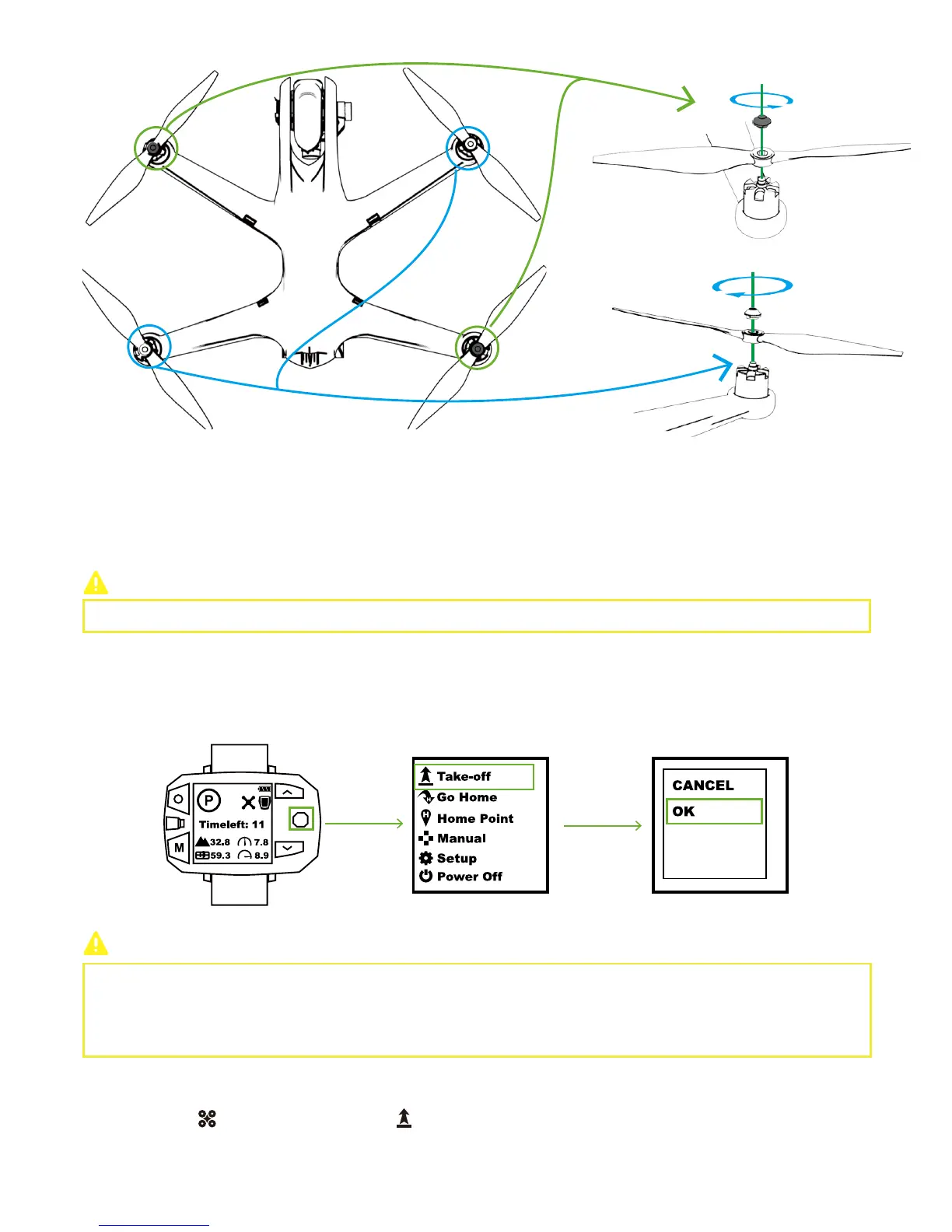 Toggle Nav. Button to the right & enter Menu Interface. Select “Take-off” option and choose “OK” in the pop-up window. One-Key