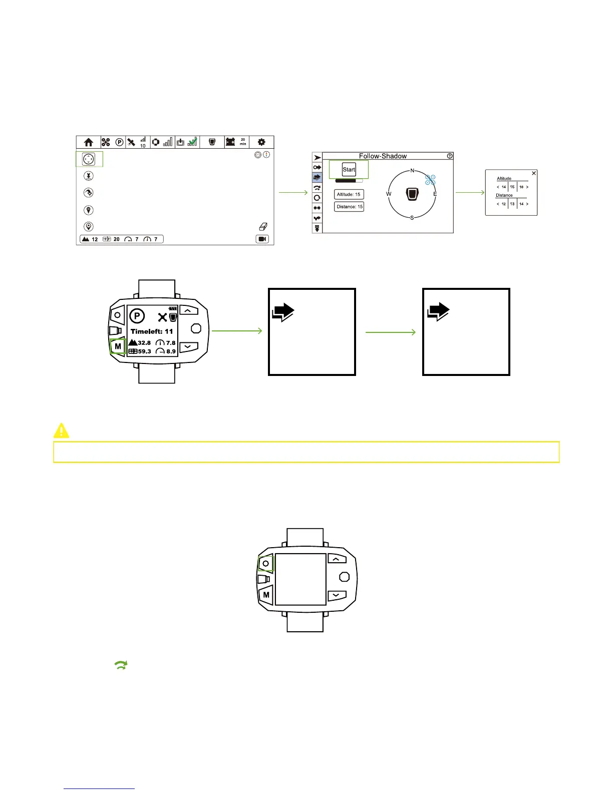 When connection is OK, press Mode Button repeatedly until Follow-Shadow icon shows on the screen. After 3 times of beeps,