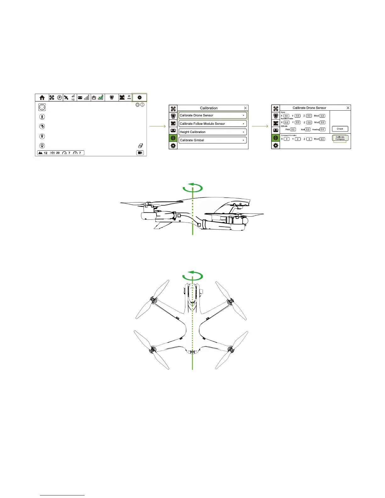 ② Select "Calibrate Drone Sensor" option and choose "Calibrate Compass".