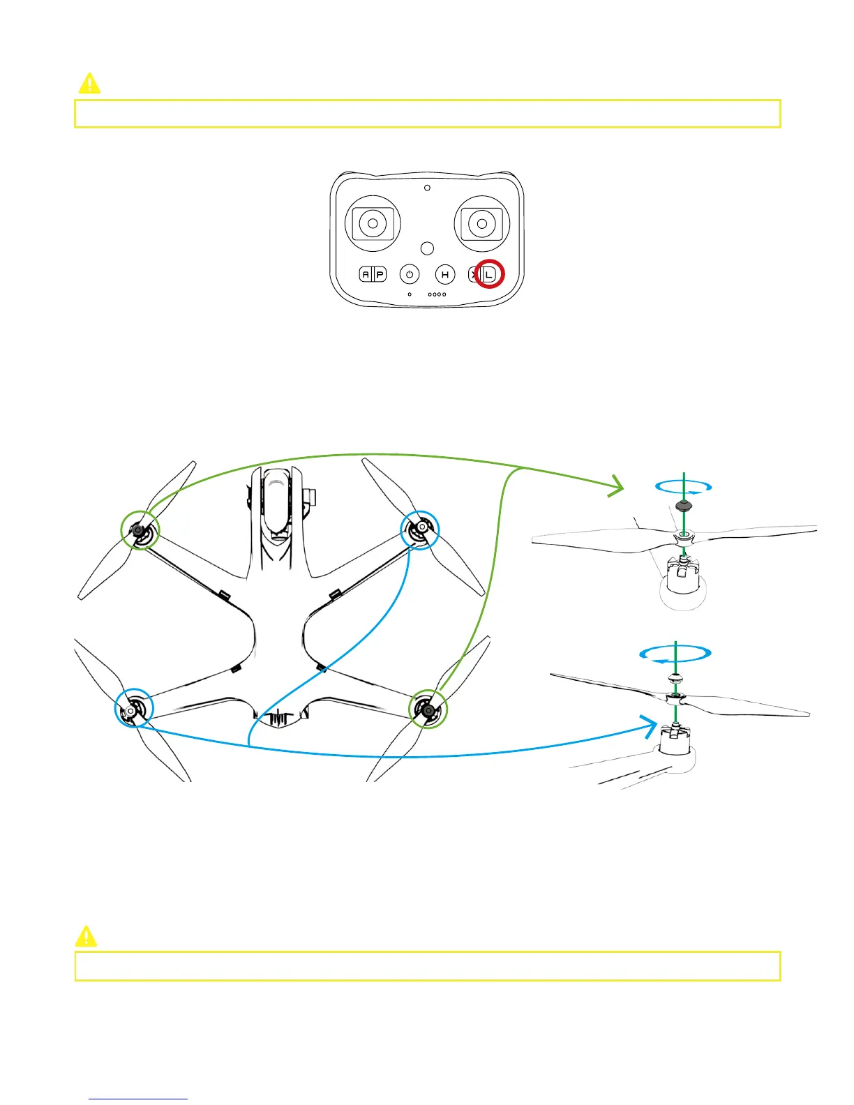 ③ Enable One-key land (press and hold L Button for over 3s) and check whether or not four motors can stop.