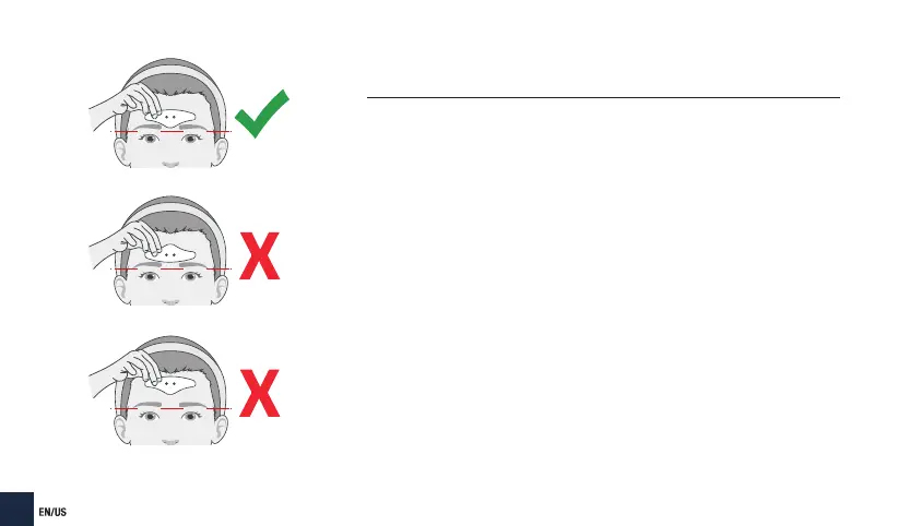 • Use a mirror to place the electrode on your forehead
