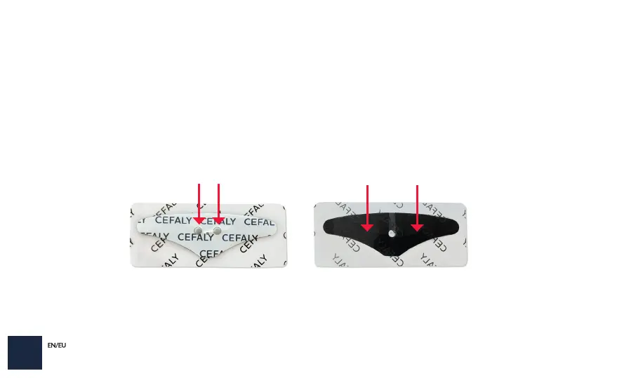 the skin. The electrode has two contact zones that connect with the CEFALY Enhanced