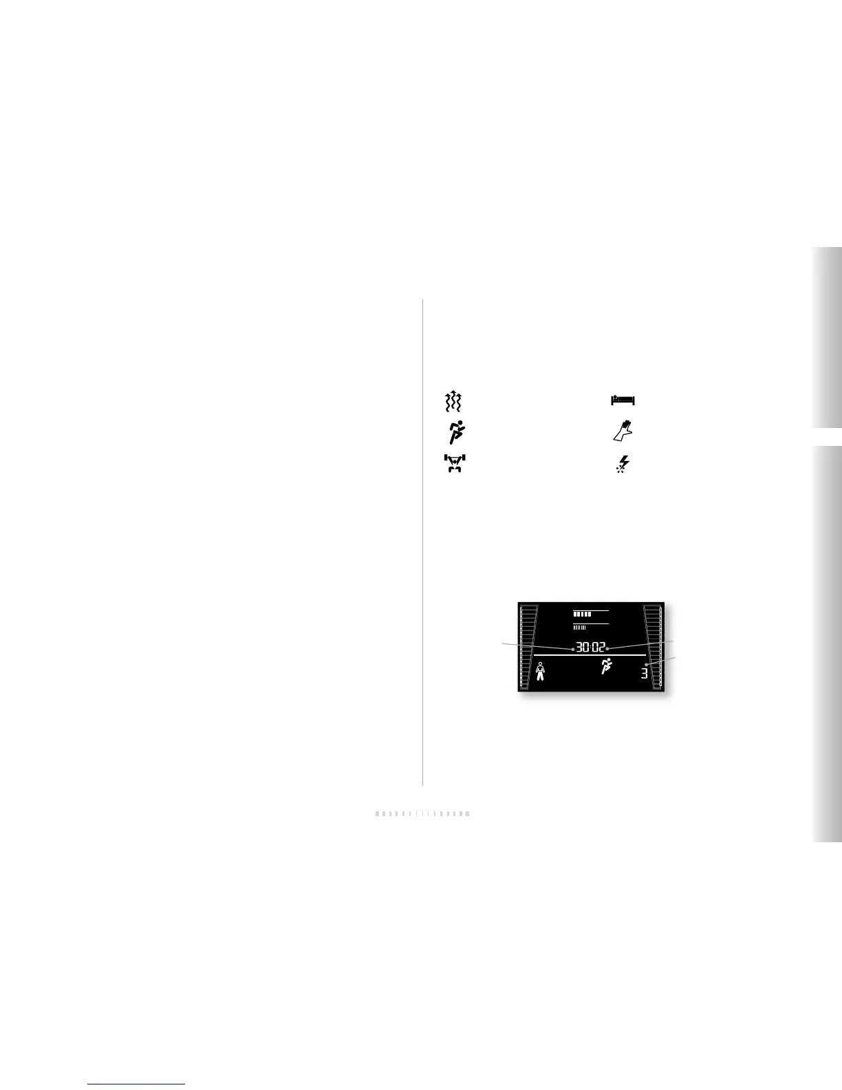 entre chaque série. Le temps de pause est décompté à l’écran, de