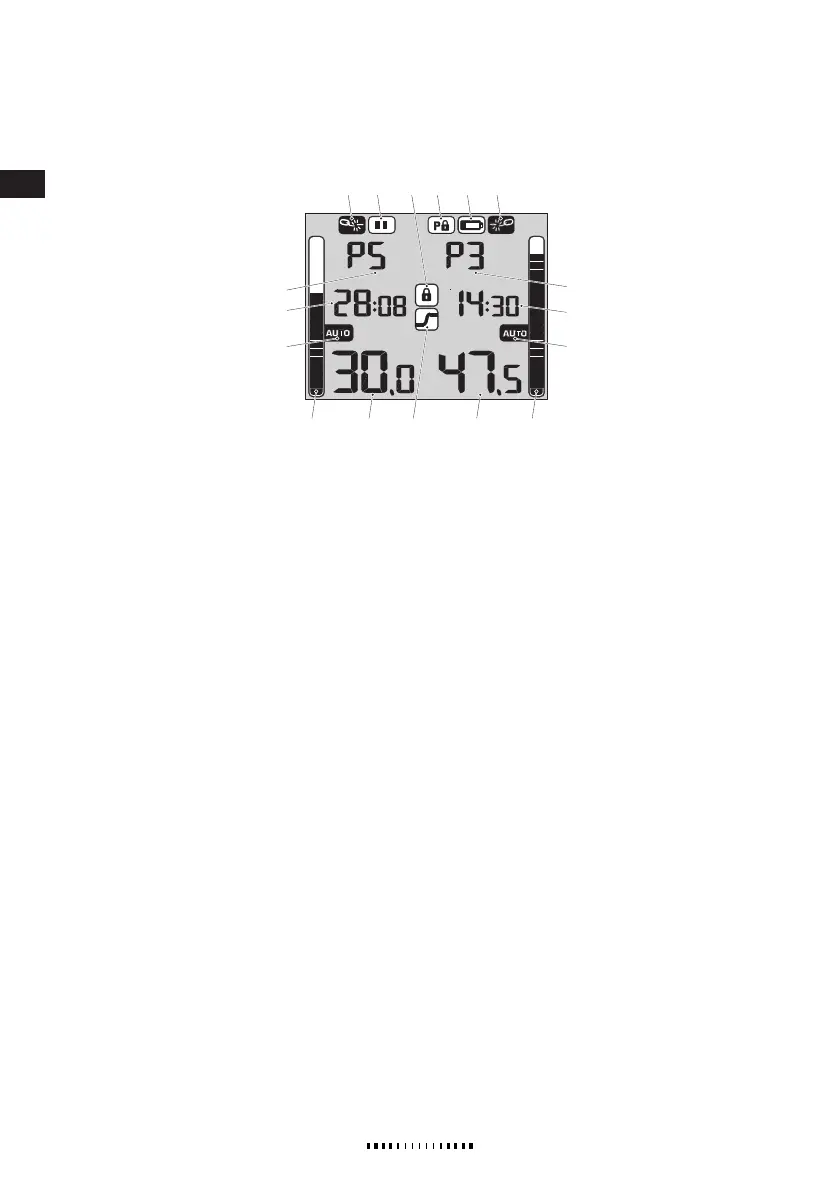 Remaining program time in minutes and seconds. Time is flashing during timer setting.