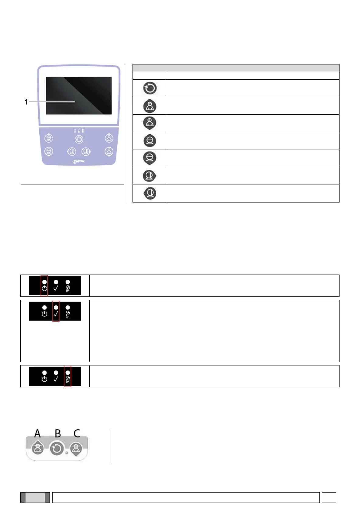 The lower part is composed of 7 buttons which allow moving X-ray device parts (column, chin rest, laser traces) used