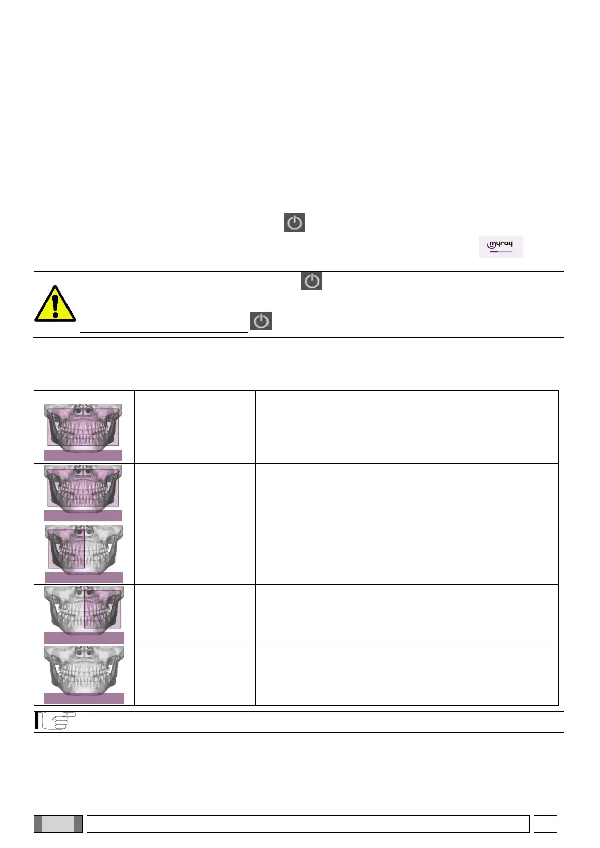Turn on the X-ray device by pressing the on/off button on the rear near the column base: the display lights up