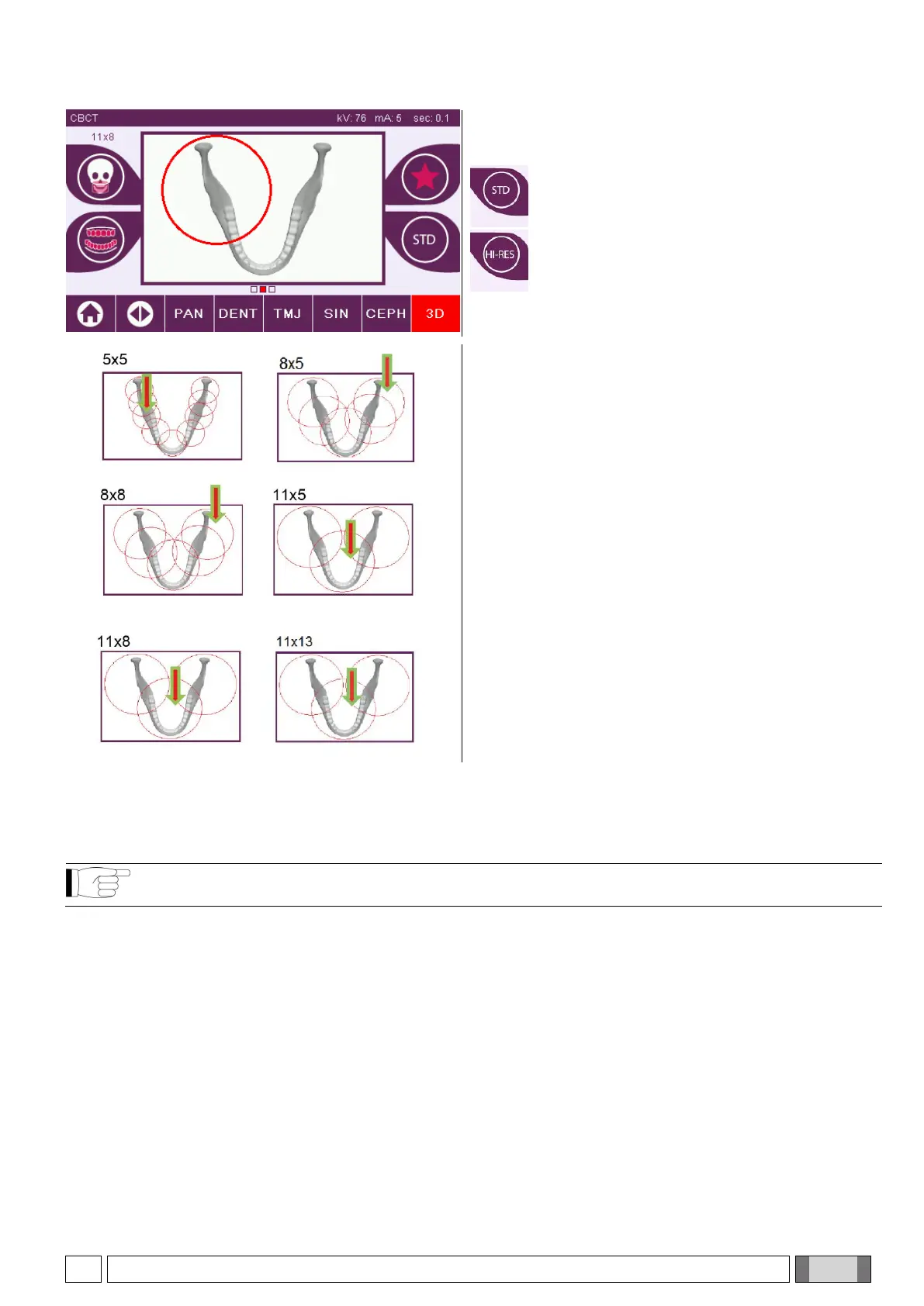 anatomical region involved in the 3D examination will be finely adjusted from the PC workstation through the guided