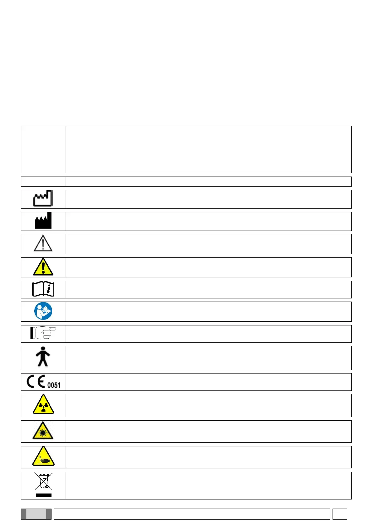 The following symbols may be found on the X-ray device and in the Manual: