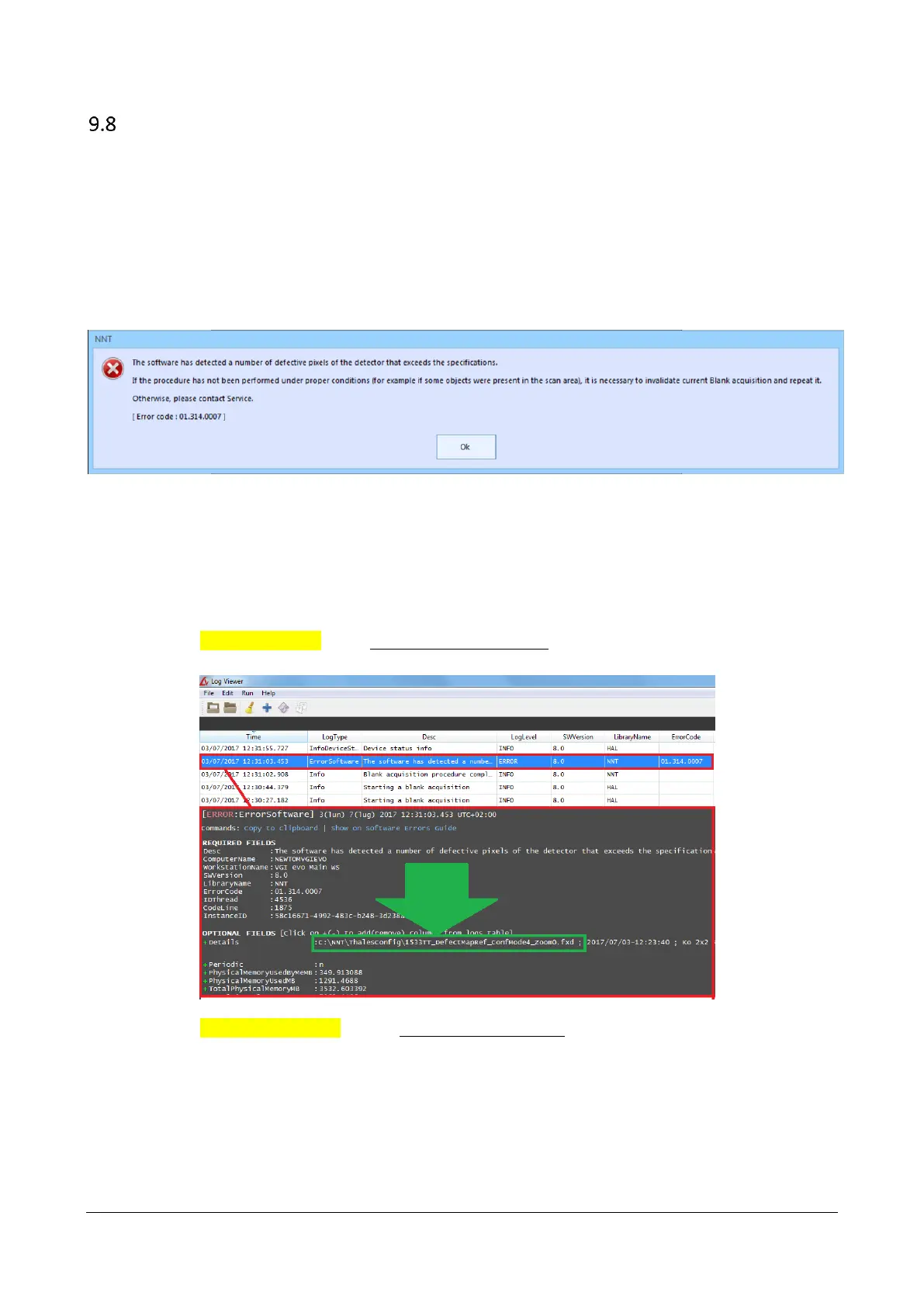 In case the software during the blank procedure, detects a high number of pixels that cannot be corrected, the following