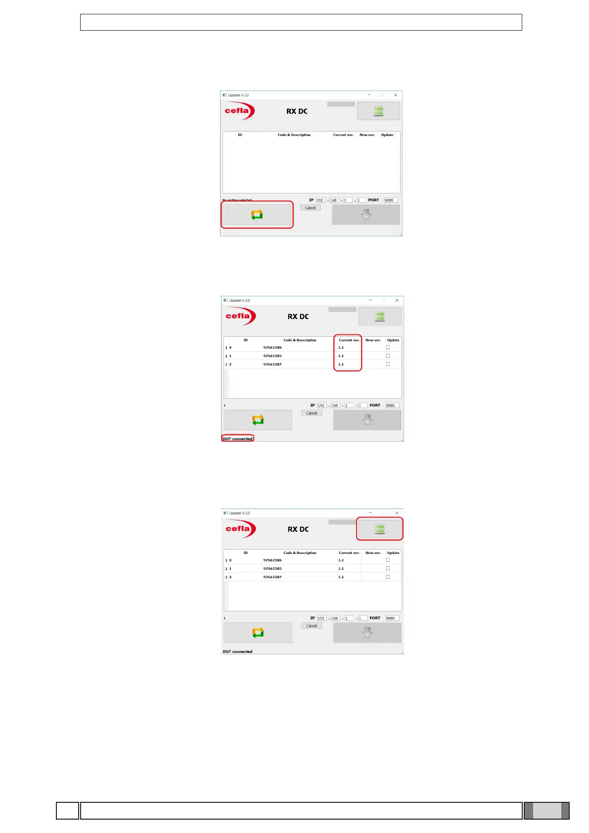 As a consequence, the “DUT connected” message will be displayed at the bottom right, and the current FW