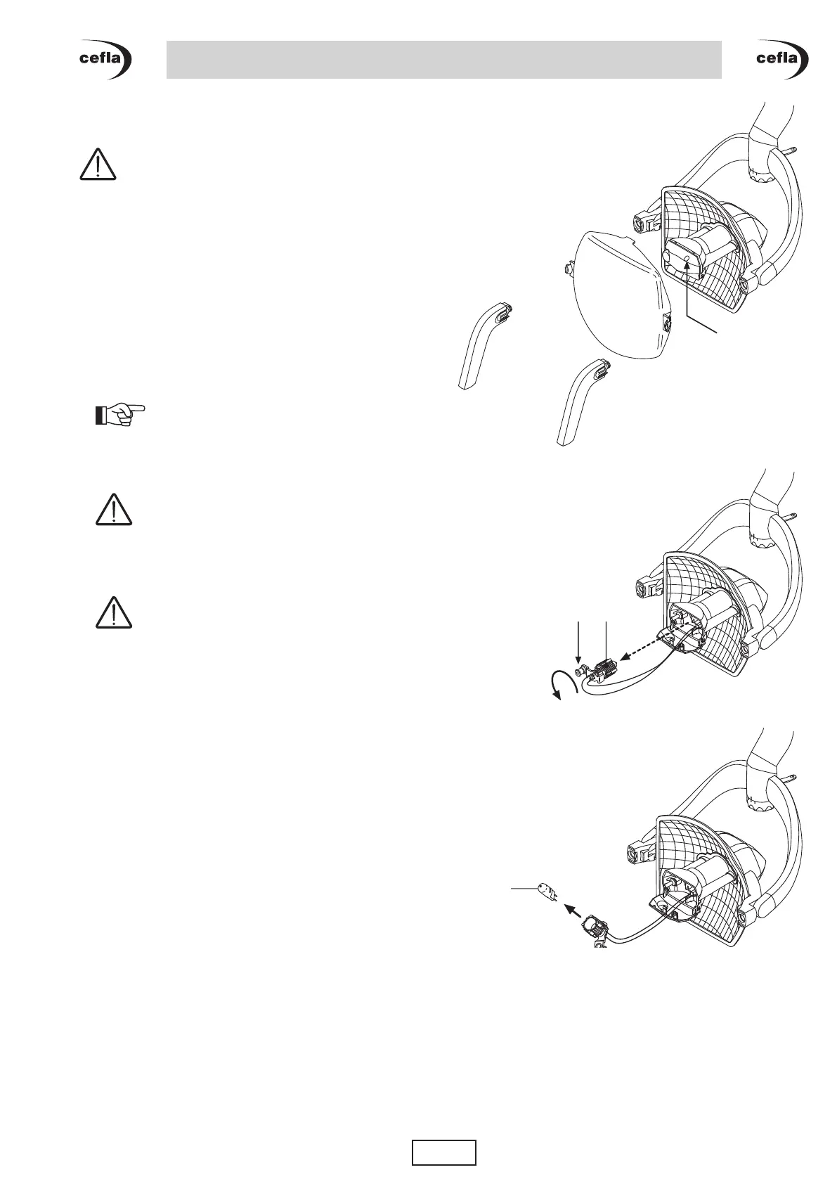 • remove the bulb support (i) after unscrewing the ring