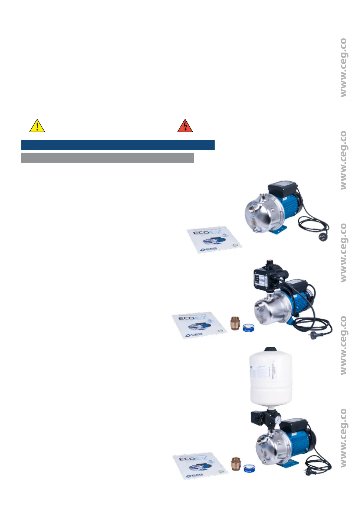 Congratulations on your purchase of the CEG ECOJET water pump. Like all CEG products, we have developed them with