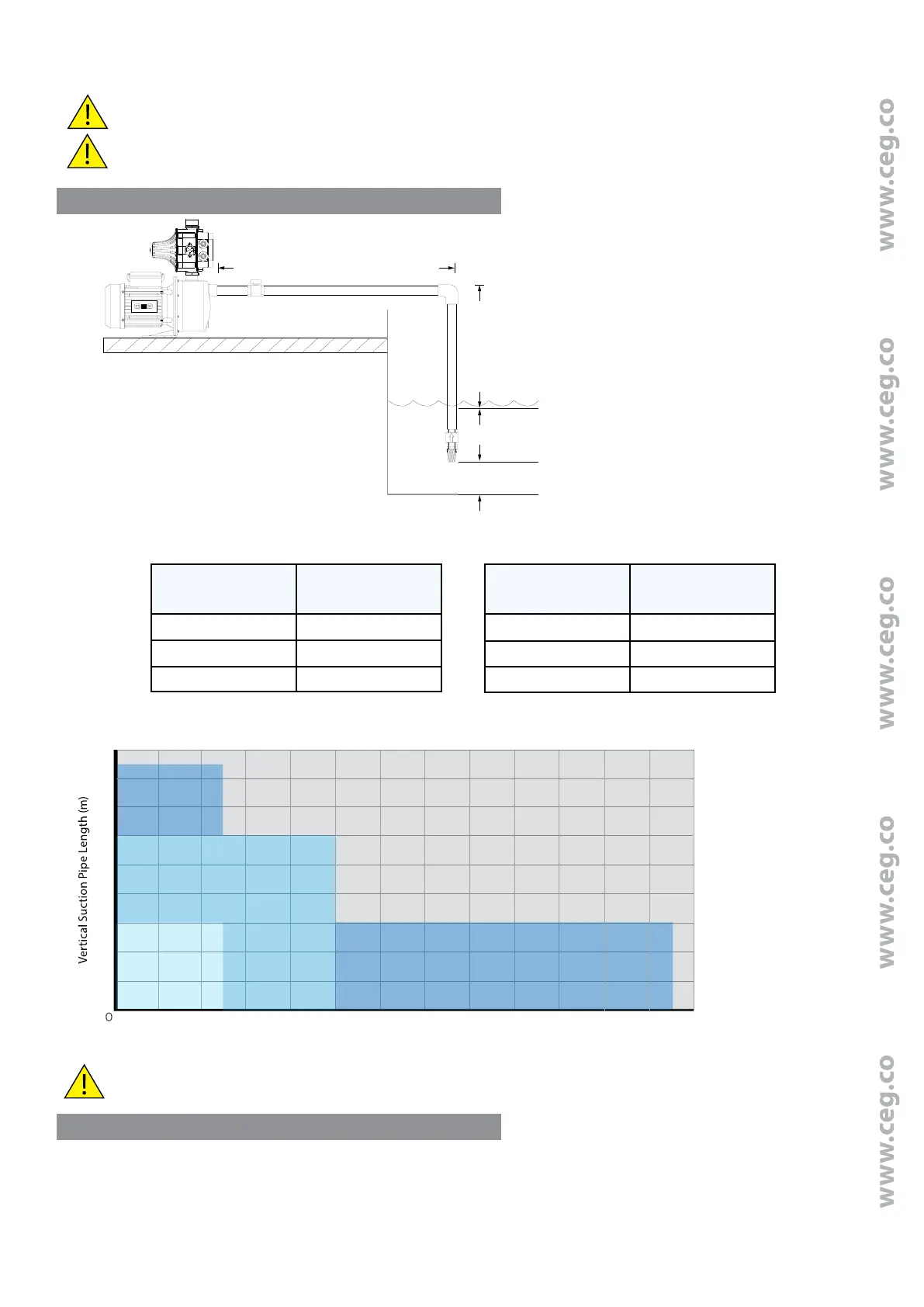 Incorrect size selection of pipes may result in pump damage that is not covered under warranty and may aect pump