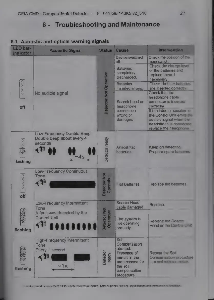 Ceia CMD - Troubleshooting and Maintenance; Acoustic. and Optical Warming Signals