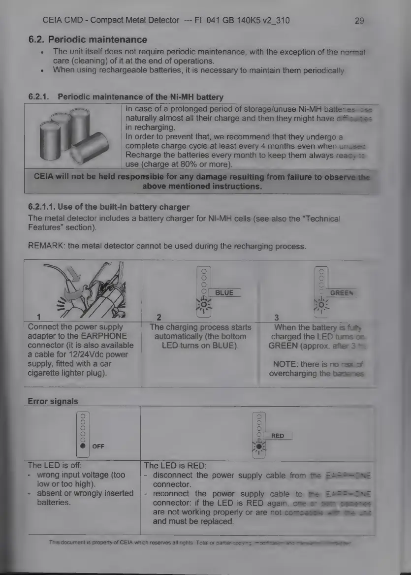 Ceia CMD - Ó- Há- M; Periodic Maintenance of the Ni-MH Battery; 6.2.1.1. Use of the Built-In Battery Charger