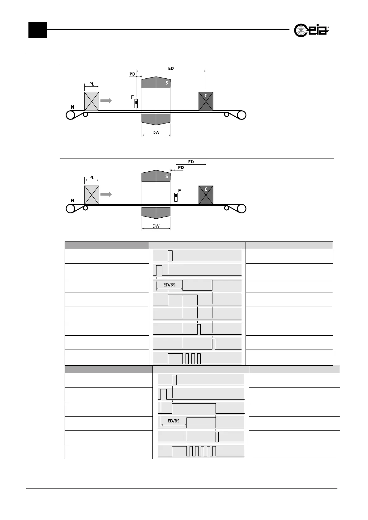 ED = Removal zone distance; BS = Transit speed set on BS parameter or, in presence of an encoder (KE>0), measured
