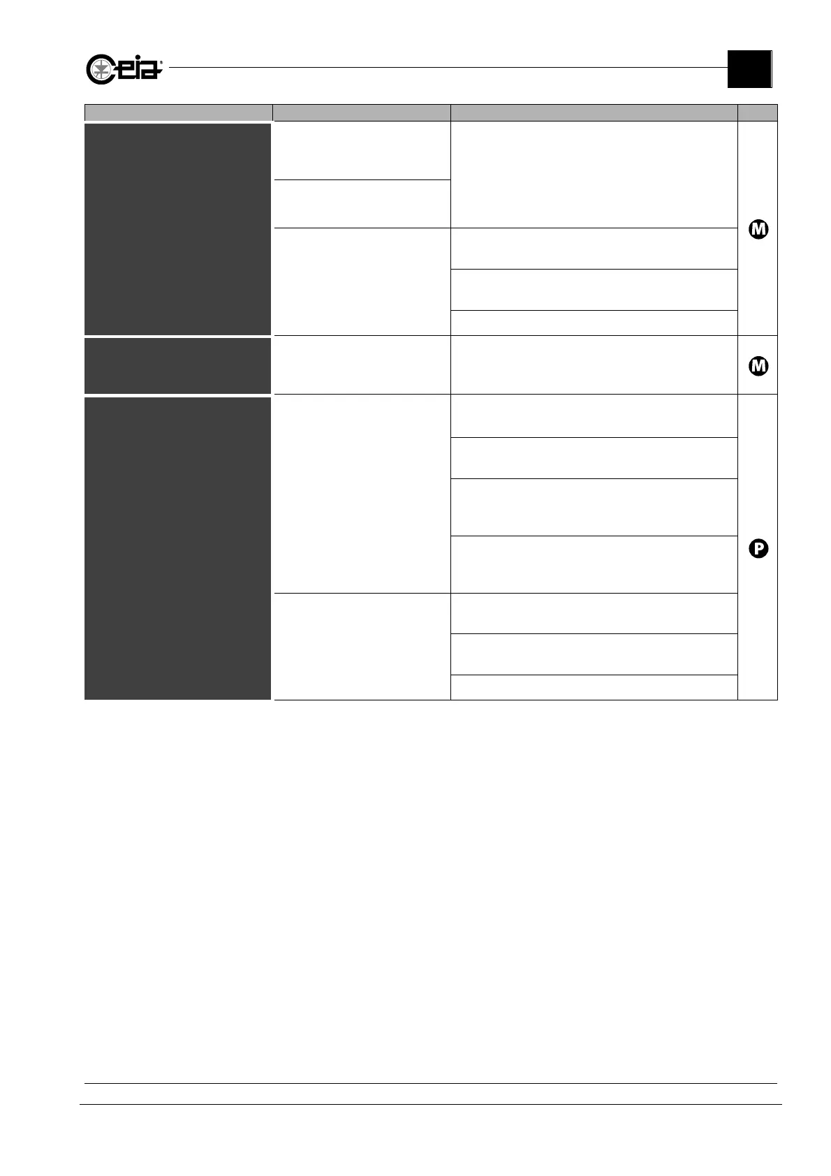 Fault Message Probable cause Action Type
