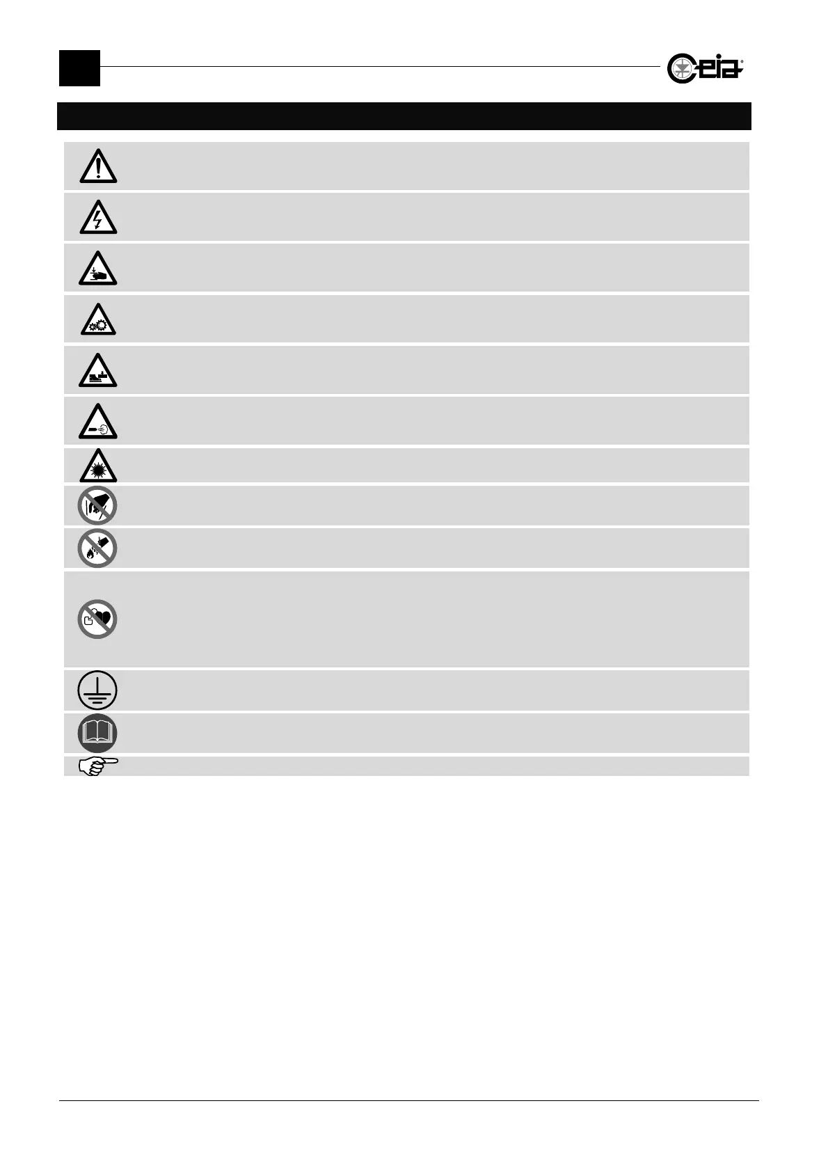The equipment is marked with this symbol in the areas where the user must be careful to avoid crushing of hands. Only
