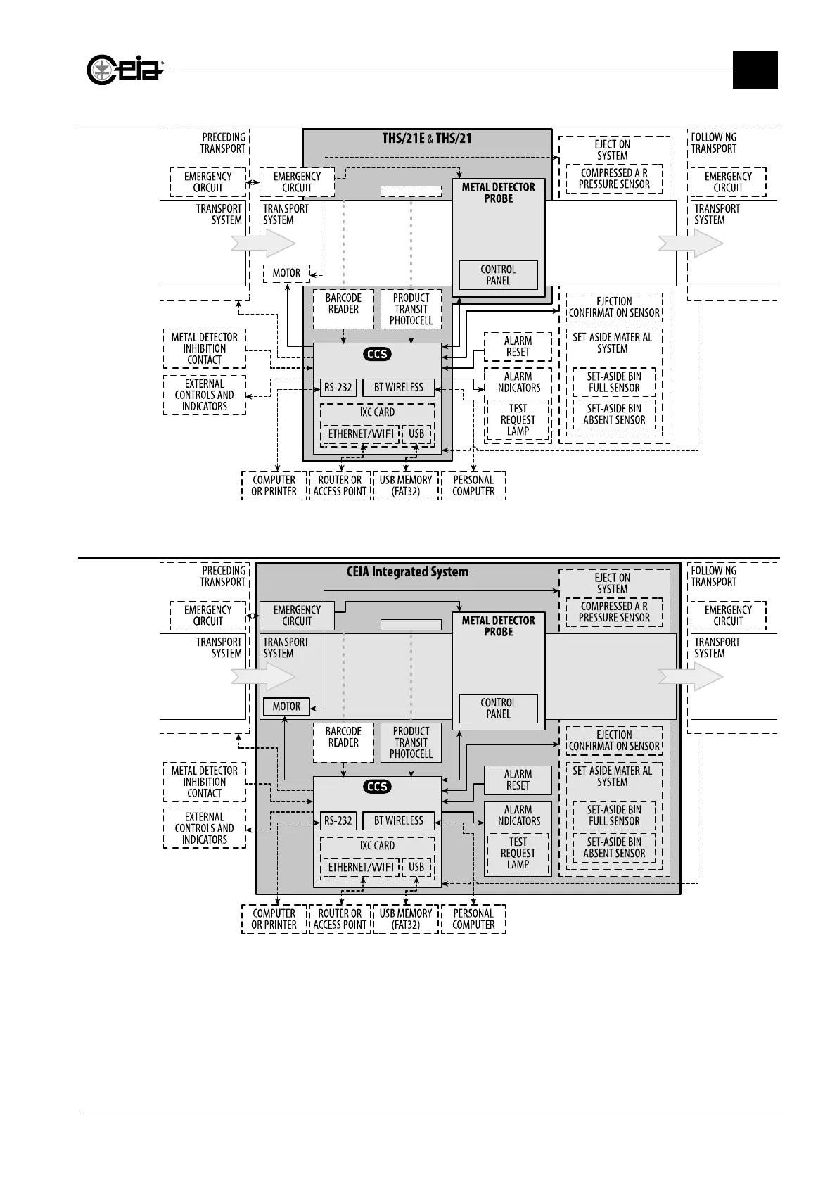 Ceia THS/21 - THS with Conveyor Control System Diagram; Integrated Systems with Conveyor Belt Diagram