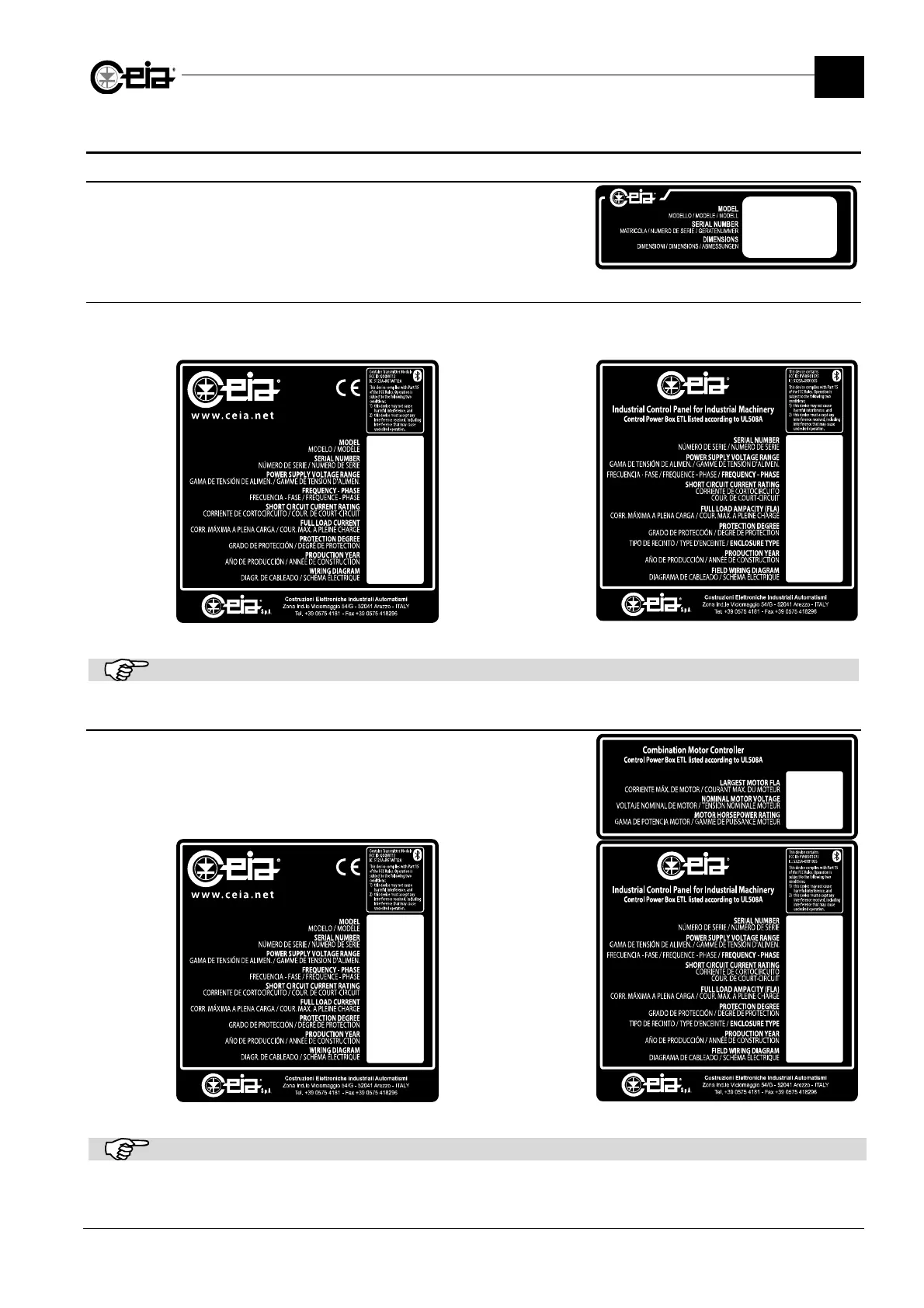 ID plate for CE models ID plate for UL508A models
