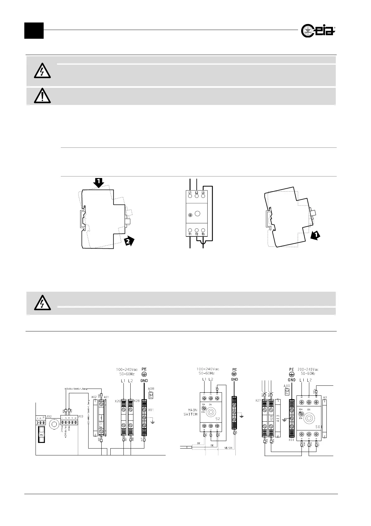 Install a magnetothermic switch upstream: 250 VAC, max 16 A (on CE applications)