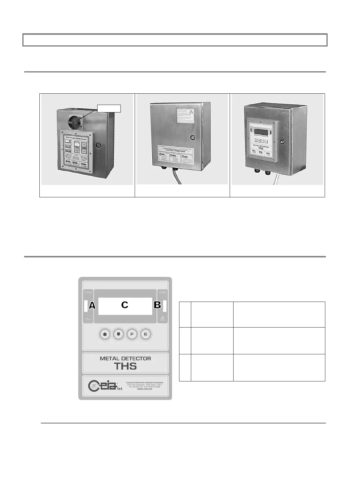 In the Power Control Box is included an acoustical indicator that is activated in case of alarm for the detection of metallic