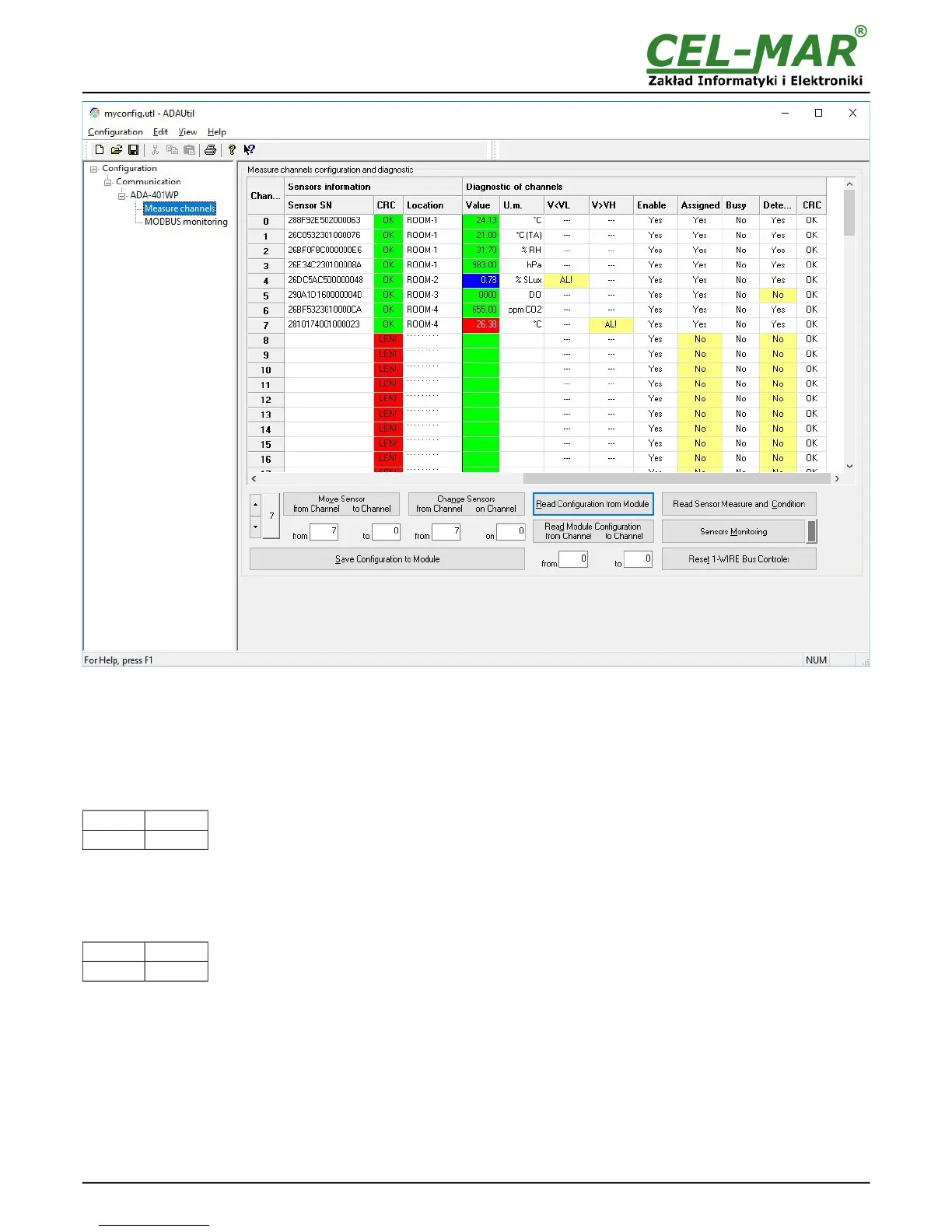 Readout of channels diagnostic and sensor measurement values by pressing the button Read Sensor Measure and Condition.