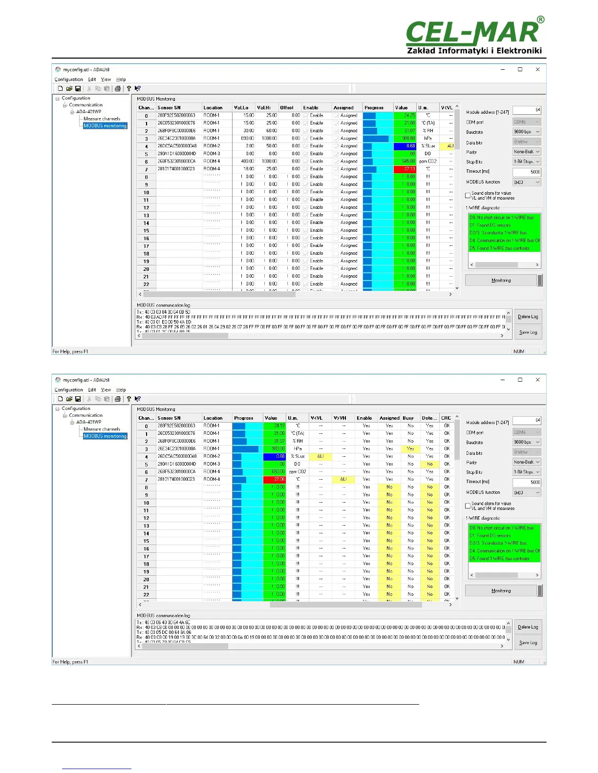 Fig 14a. View of MODBUS monitoring window – configuration parameters of channels