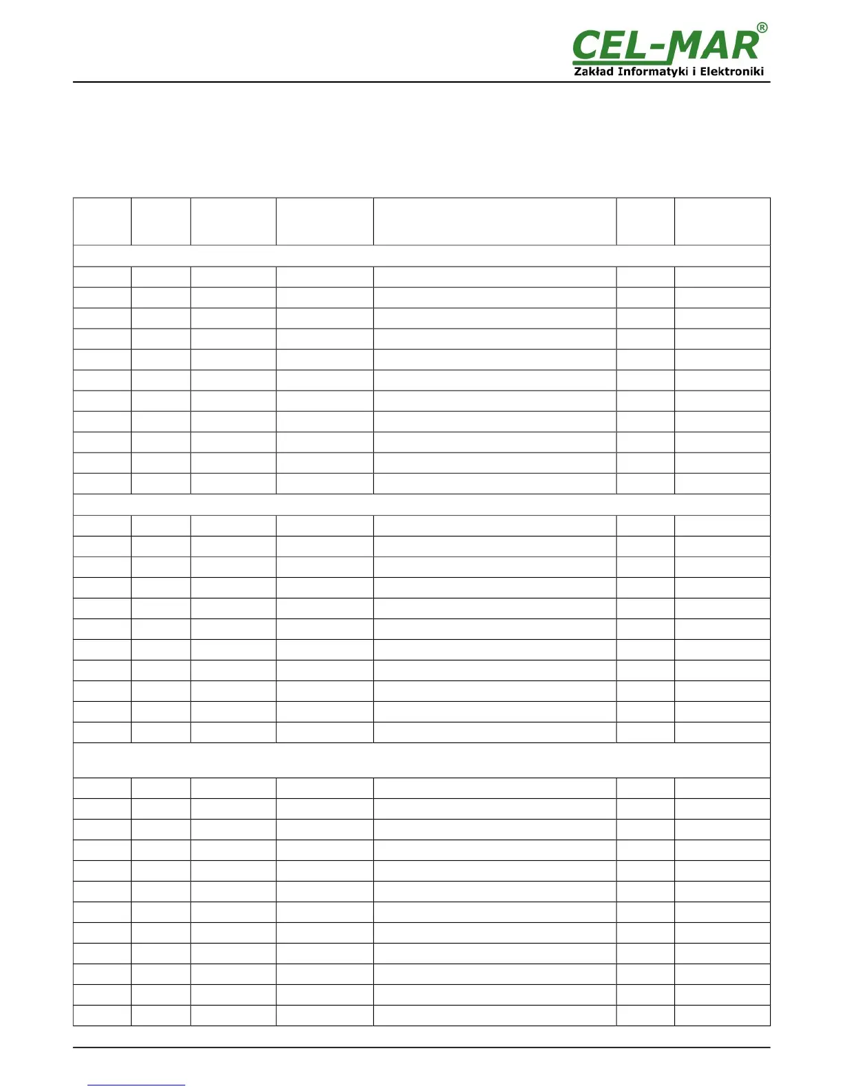 7.1. TABLE OF MODBUS-RTU ADDRESSES