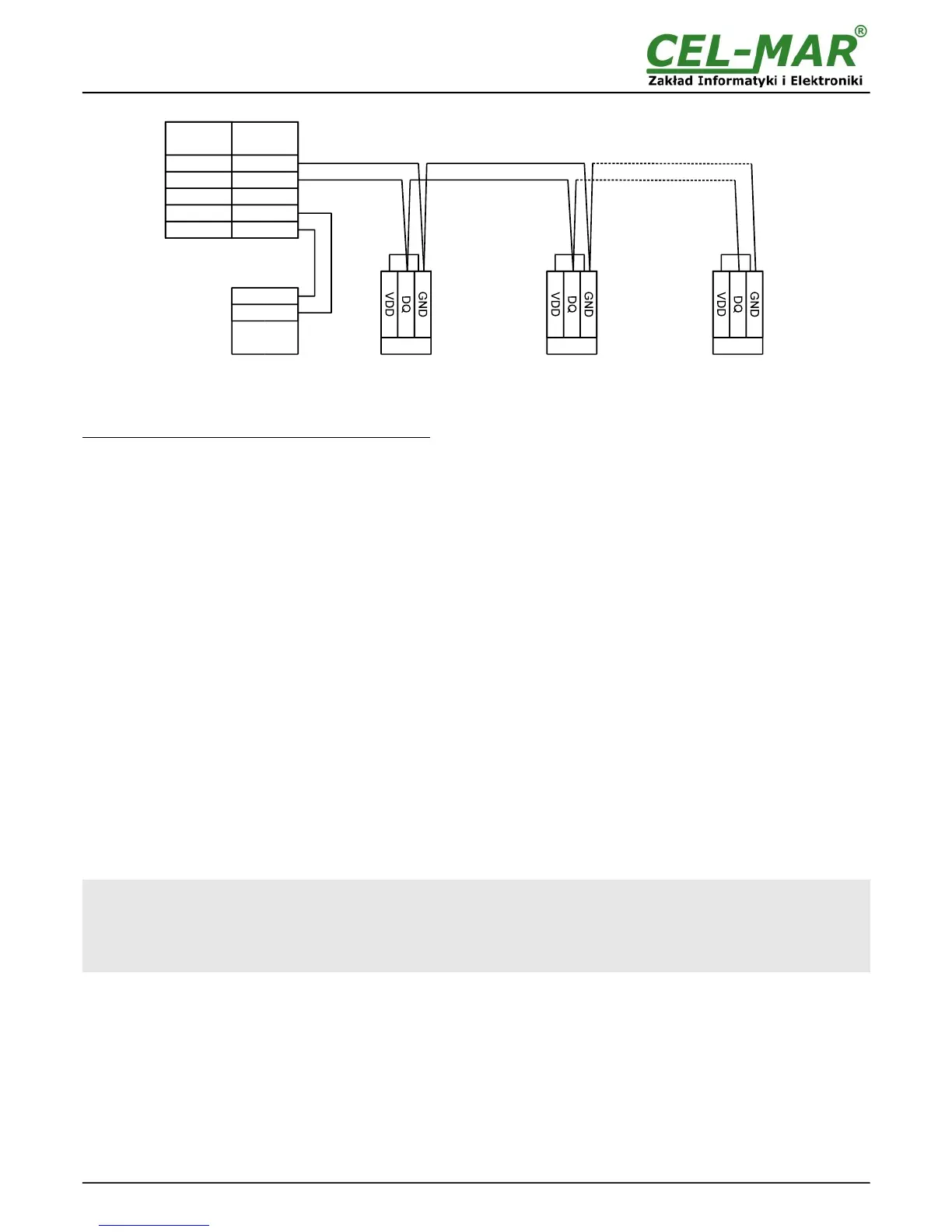 – 1-WIRE network connection in linear topology or use the passive 1-WIRE network splitter DNB-400,