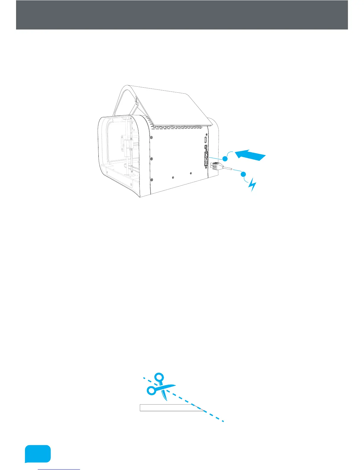 Connect the supplied AC power lead to Robox® and switch on using the rear