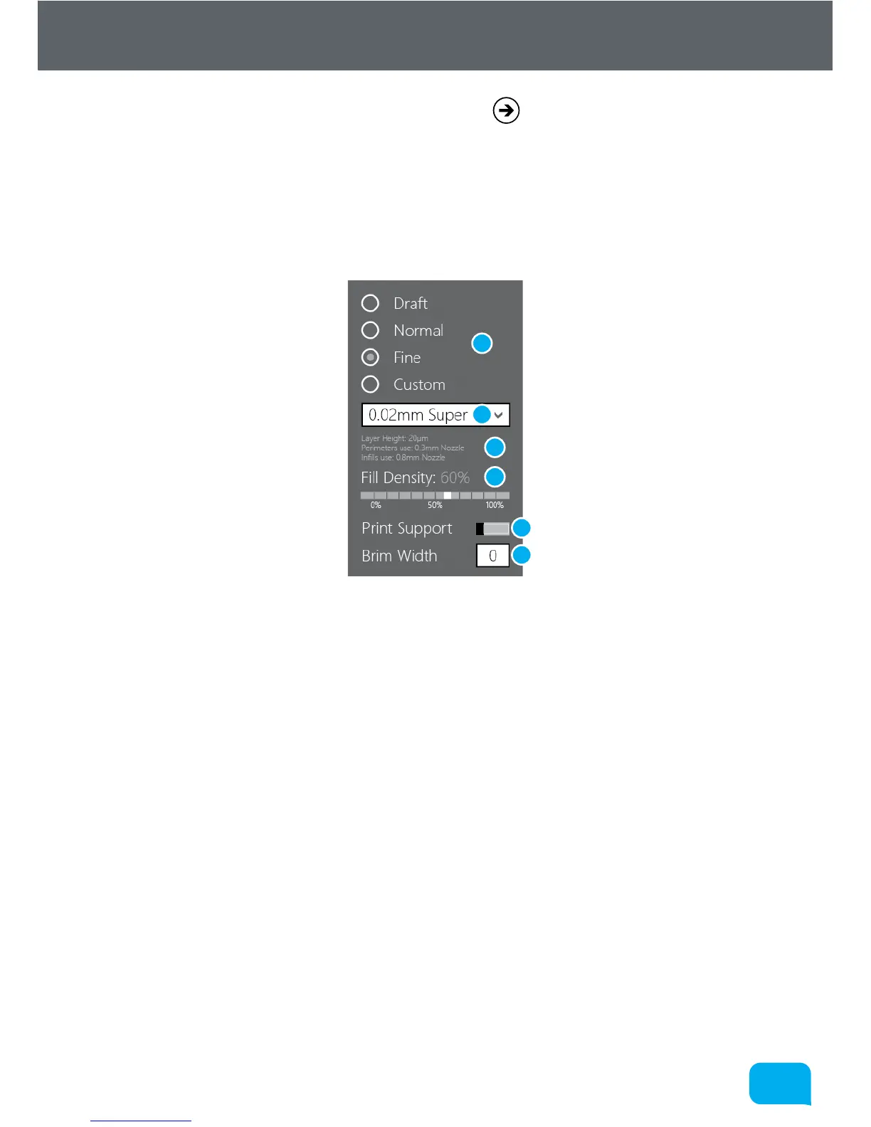This part of AutoMaker™ is used for modifying any settings relating to the print