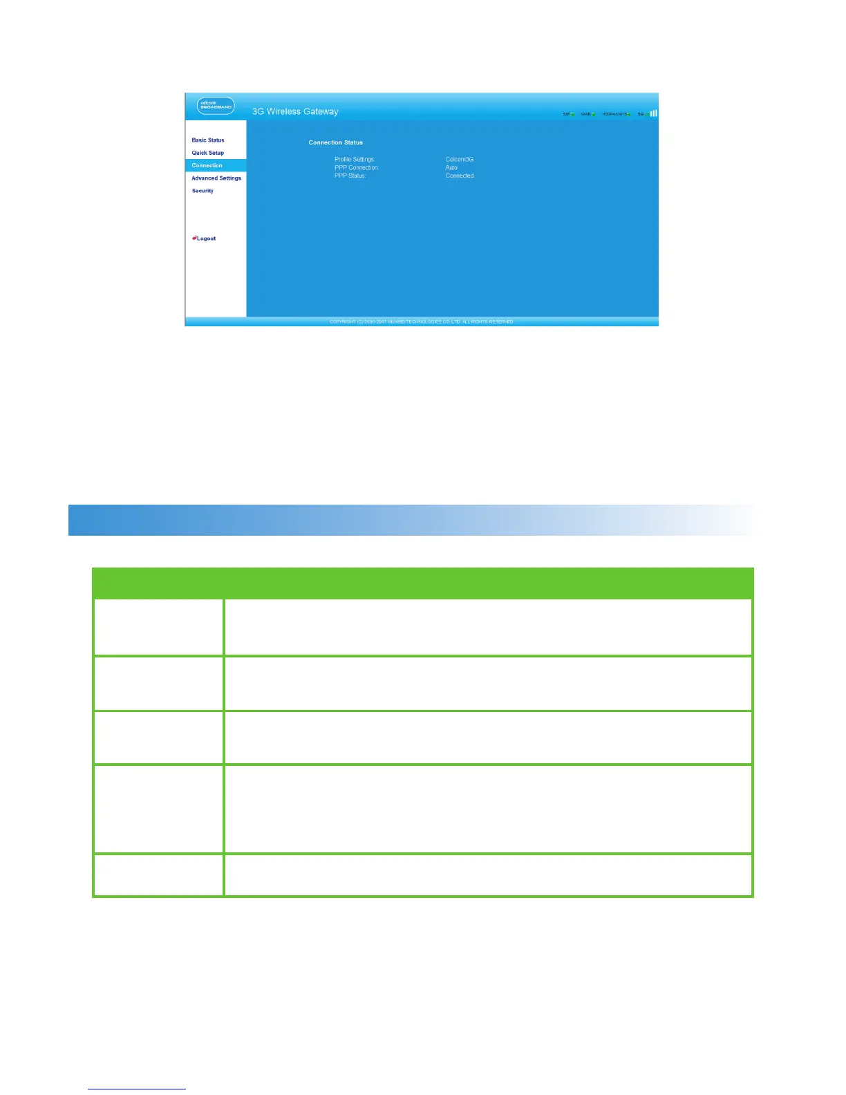 Basic Status Displays the parameter conguration status of the gateway. For