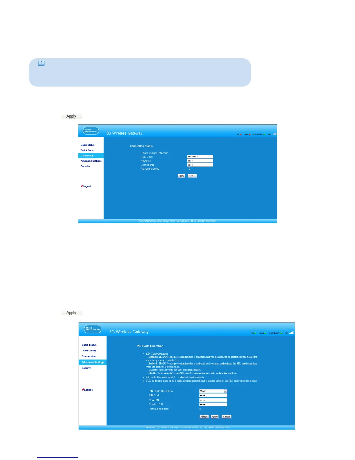 If the PIN code is locked, you need to enter correct PUK code and set the new PIN code to