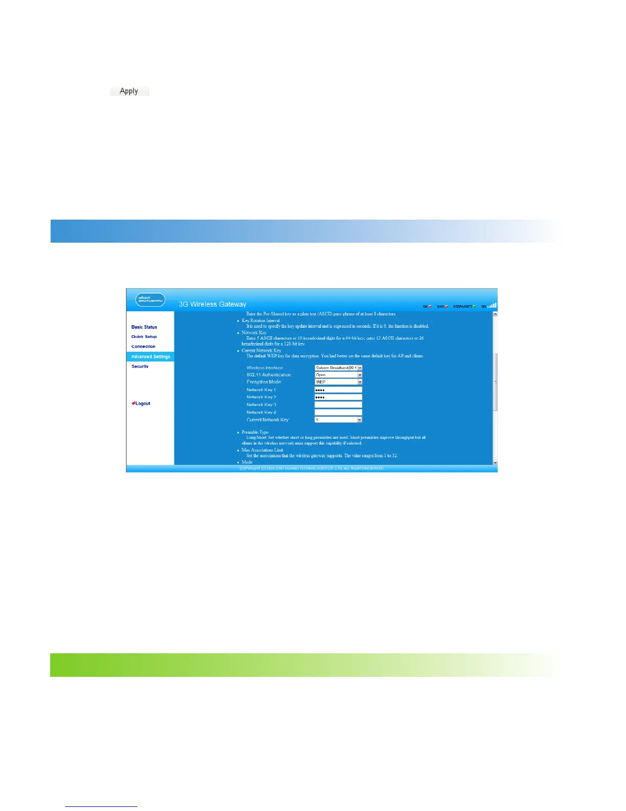 As shown in the following gure, you can set the Preamble Type, Max Associations Limit,
